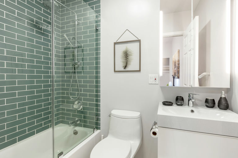 There is ample counter space for preparing meals and a generous number of cabinets for convenient storage.