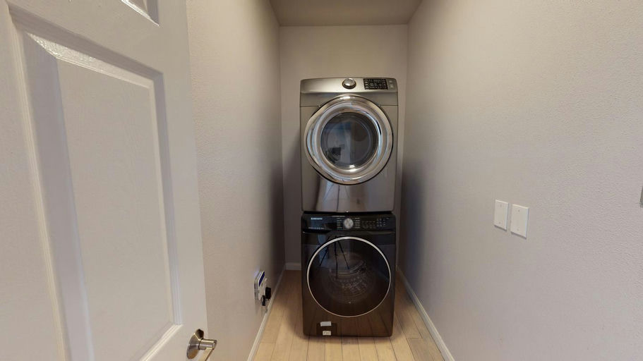 The kitchen is fully furnished with all the cookware and utensils you need, plus modern stainless steel appliances for easy cooking. There is a 3-seat counter for dining, and a large window lets in lots of natural light. There’s also a cozy spot for a washer and dryer.