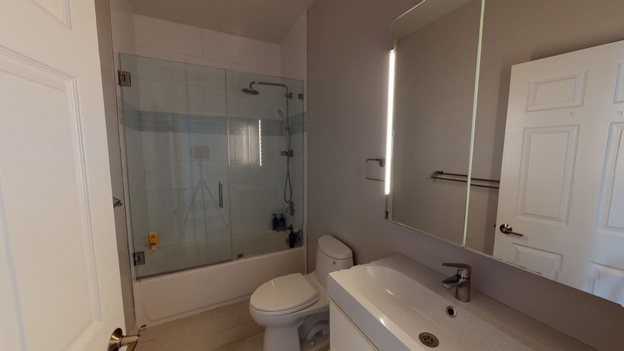 Each bedroom has built-in closets and windows with shades to control lighting and provide privacy. This setup ensures comfort and convenience for everyone living here.